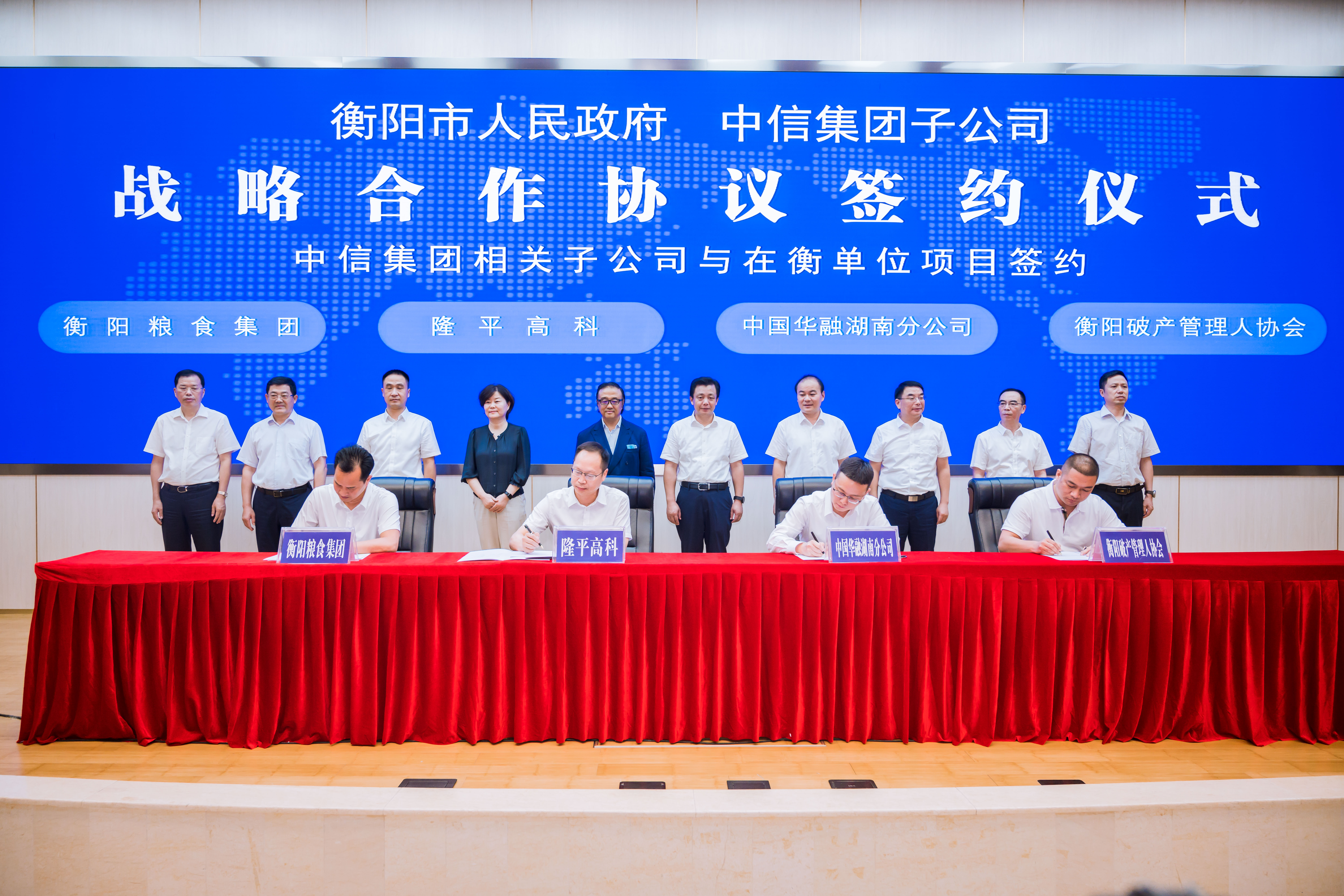 9月8日下午,衡陽市人民政府與中信集團在湘子公司戰(zhàn)略合作協(xié)議簽約儀式在市委一號樓舉行。省政府副省長、衡陽市委書記秦國文出席簽約儀式,中信集團業(yè)務(wù)協(xié)同部總經(jīng)理蘇國新,市委副書記、市長朱健分別致辭,市委常委、常務(wù)副市長于新凡等領(lǐng)導(dǎo)共同見證簽約。衡陽糧食集團有限責(zé)任公司黨委書記、董事長陳廷與袁隆平農(nóng)業(yè)高科技股份有限公司(以下簡稱“隆平高科”)副董事長袁定江就“種糧研儲項目”現(xiàn)場簽訂了合作框架協(xié)議,共同打造衡陽糧油科技產(chǎn)業(yè)園之種糧研儲平臺。