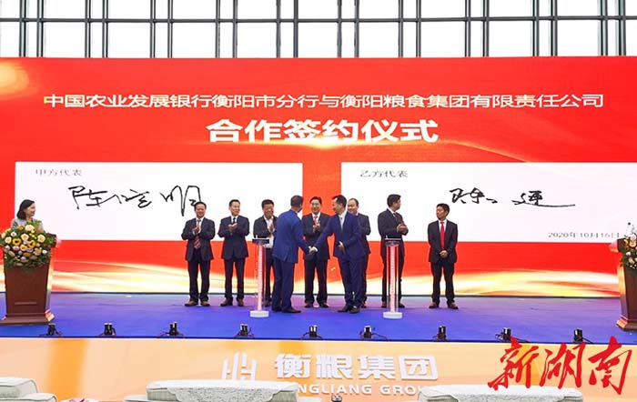 △揭牌儀式上,衡糧集團(tuán)與市農(nóng)發(fā)行簽署了合作框架協(xié)議